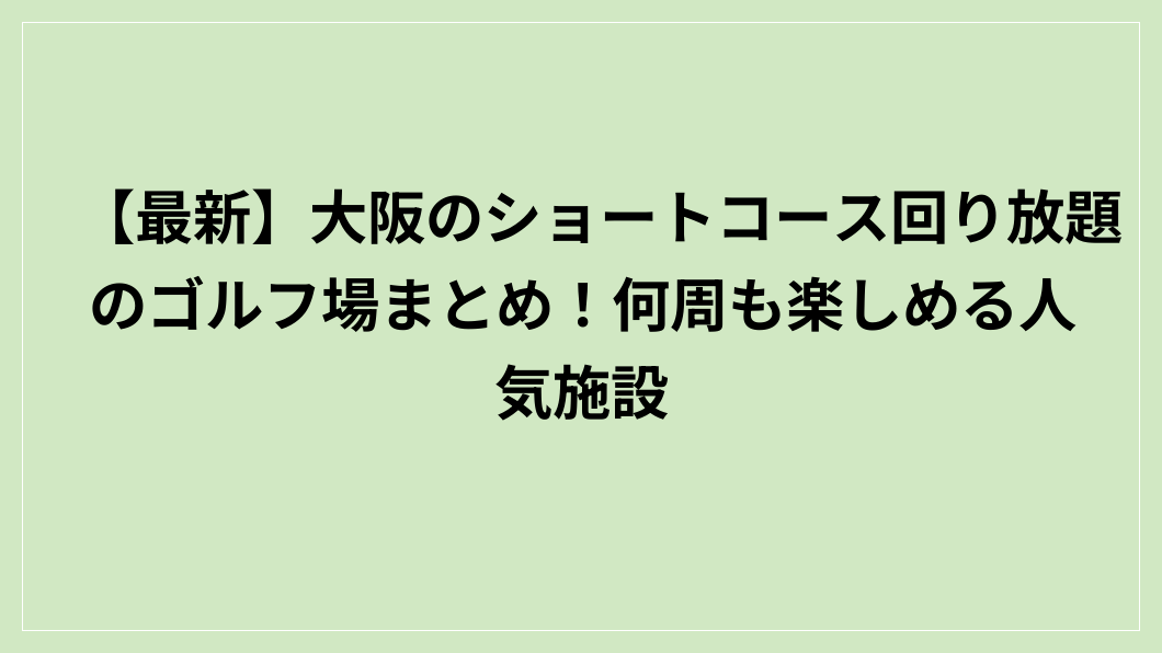 今回は、楽天GORAで確認できる事実情報をもとに、大阪でショートコース回り放題を楽しめるゴルフ場を厳選してご紹介します。